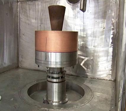 1307#產(chǎn)品ZGX-50B雙性能鑄造爐中的液壓隨動傾轉(zhuǎn)澆注系統(tǒng)與離心轉(zhuǎn)動機構(gòu)系統(tǒng)是整臺設(shè)備的核心部件,它可以將熔煉好的鋼液用模仿人的操控動作快速準確倒入模殼中,然后開動轉(zhuǎn)動機構(gòu),使水冷結(jié)晶器帶動模殼按程序正反方向旋轉(zhuǎn),待高溫合金凝固后即得到細晶組織。這兩項動作必須連貫無誤的操作執(zhí)行才能成功。