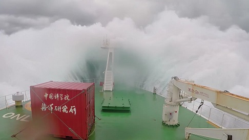在船上的54天里,我們布放了14套潛標,回收了11套潛標,累計布放803件,回收了294件,其中也包括我們所生產(chǎn)的ADCP。雖然我主要負責(zé)我們的設(shè)備,但也負責(zé)了所有的潛標布放,而在布放的過程中,最常見的天氣就是高溫炎熱,因為船舶一直在赤道附近作業(yè),所以船甲板溫度在40度以上,我們常常頂著毒辣的太陽在甲板上布放,也讓布放增加了難度,而還有個自然因素就是以迅雷不及掩耳之勢襲來的暴雨,我們經(jīng)常在暴雨中連續(xù)作業(yè),全身都濕透了,也只能頂著暴雨堅守戰(zhàn)地。而值得一提的是當(dāng)大風(fēng)以20m/s速度襲來時,浪花直接拍到了6層駕駛室的玻璃上,仿佛將要把我們吞沒,此時看著浩瀚無邊的海洋,一道道波浪不斷涌來,撞擊在船體上,發(fā)出天崩地裂的吼聲,噴濺著雪白的泡沫。是那樣的壯觀。當(dāng)一切都回歸平靜的時候,又是那樣的云淡風(fēng)輕。